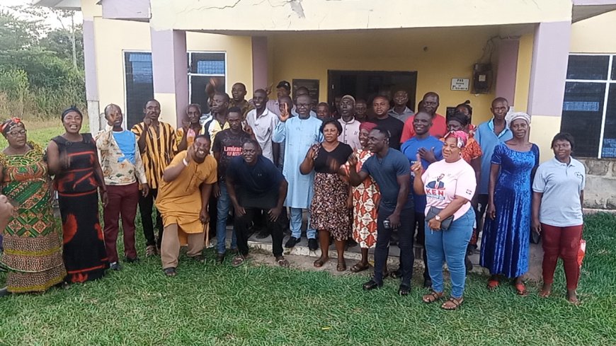 The tour began at Kwanfinfi, drawing delegates from Anyinamso, Abasua, Kwanfinfi, and Nkrumah/Betinko. Hon. Obeng Boateng urged party members to prioritize unity, competence, and credibility in selecting the party’s next flagbearer.